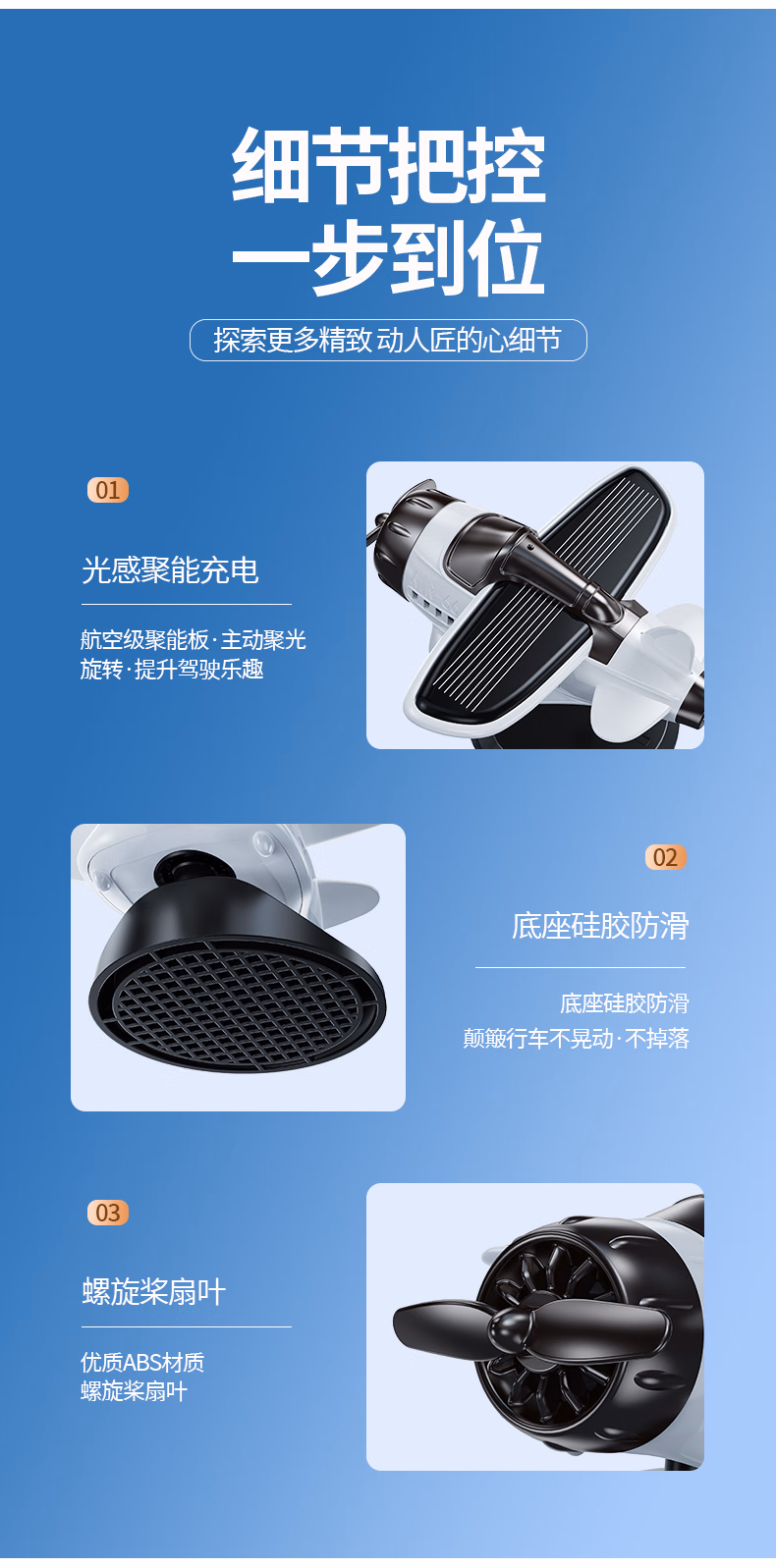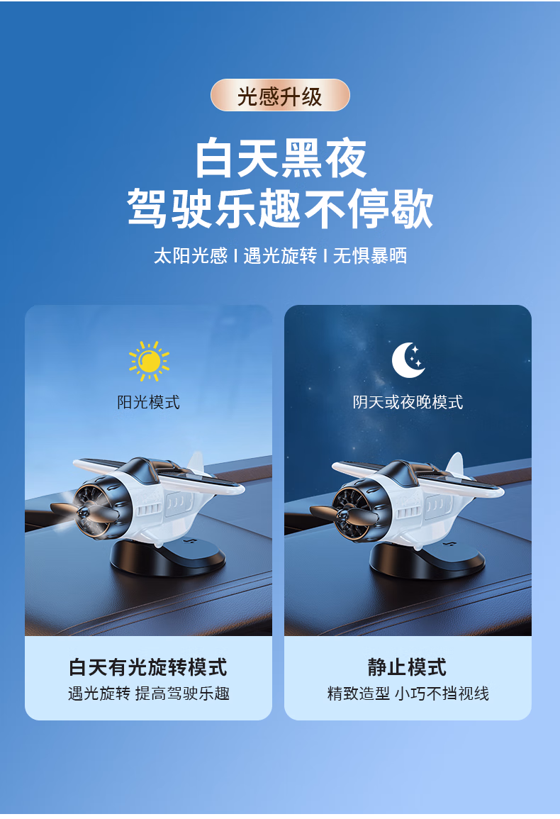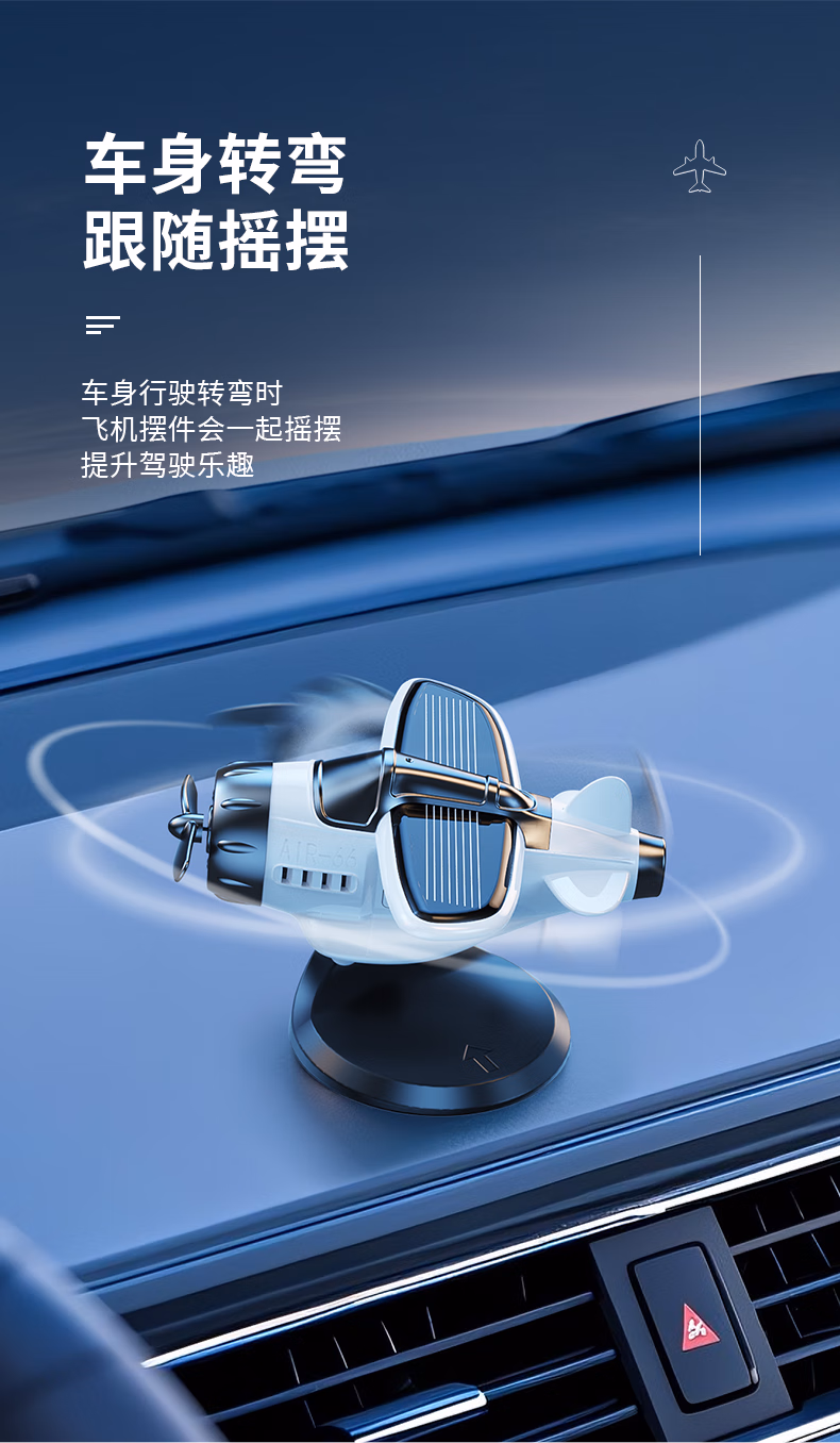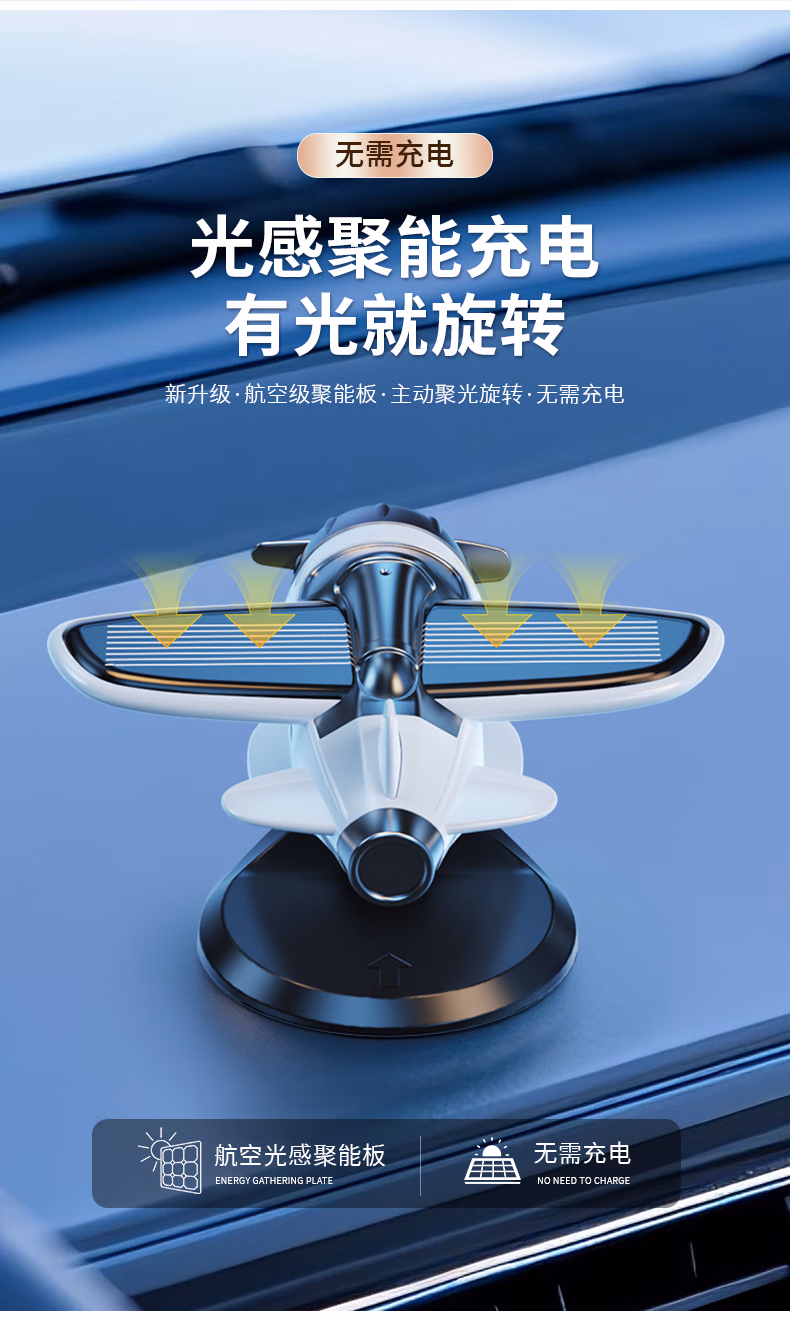 迪加伦新款车载太阳能旋转小飞机汽车创意摆件